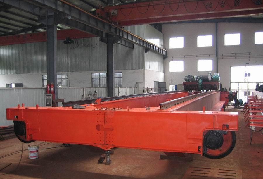 是橋架兩端通過運行裝置直接支撐在高架軌道上的橋架型起重機。它由橋架(包括主梁和端梁)、起重小車、大車運行機構(gòu)和電氣控制系統(tǒng)等部分組成。起重小車上裝有起升機構(gòu)和小車運行機構(gòu)在橋架主梁上沿小車軌道橫向運行;起重機沿廠房或露天貨場的高架軌道縱向運行,其掛梁方向分為與主梁平行和與主梁垂直兩種,并在掛梁下方裝有電磁吸盤,通過電磁吸盤完成物料搬運工作。